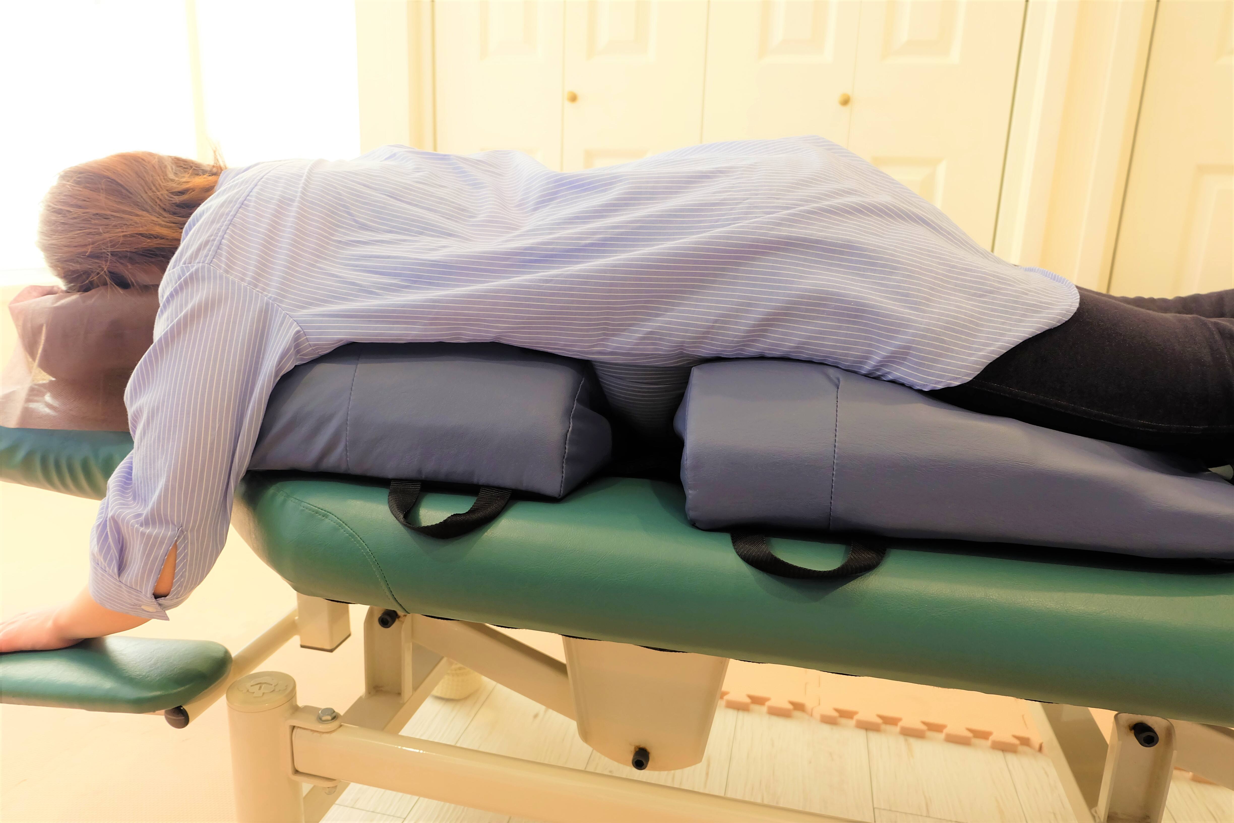 当院では妊婦さんでもうつ伏せになれる専用のボディクッションを完備しています。